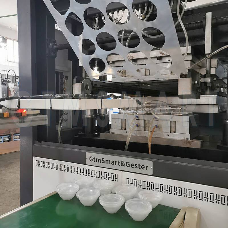 Biodegradable cup making machine mainly for the production of variety plastic containers ( jelly cups, drink cups, package containers, etc) with thermoplastic sheets, such as PP, PET, PE, PS, HIPS, PLA,etc.