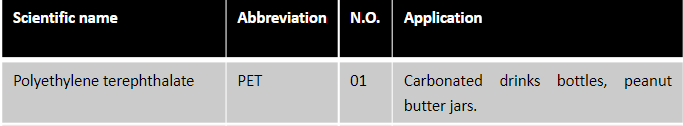 Polyesters or PET (Polyethylene terephthalate) is a clear, tough, stable polymer with exceptional gas and moisture barrier properties. It is often used to contain carbon dioxide (alias carbonation) in soft drinks bottles. Its applications also include film, sheet, fiber, trays, displays, clothing, and wire insulation.