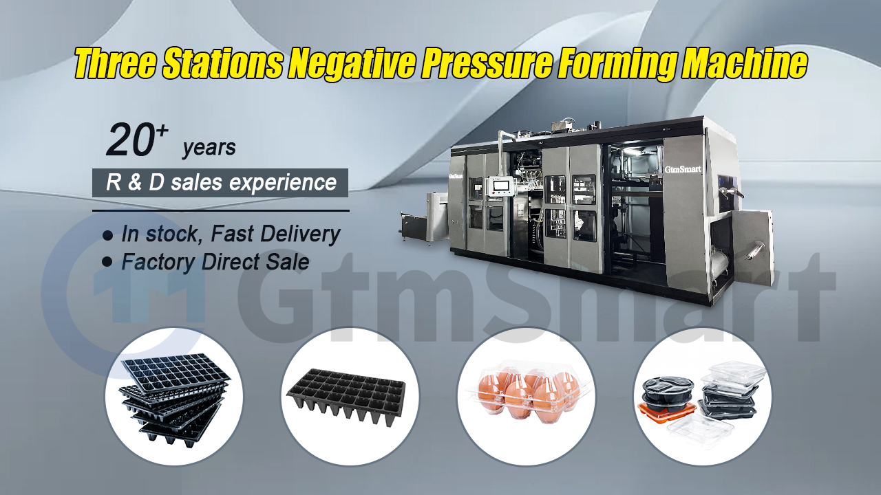HEY06 Three Stations Negative Pressure Forming Machine, mainly for the production of variety plastic containers ( egg tray, fruit container, package containers, etc) with thermoplastic sheet.
