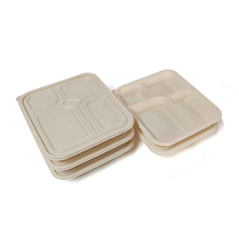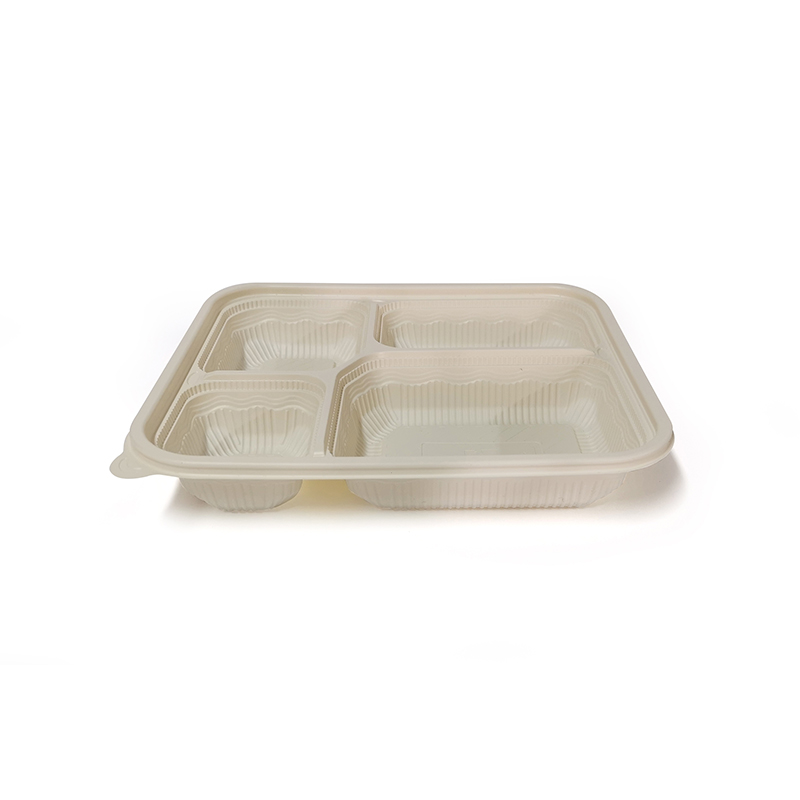 PLA Biodegradable Disposable 4 Compartment Takeaway Lunch Box With Lid