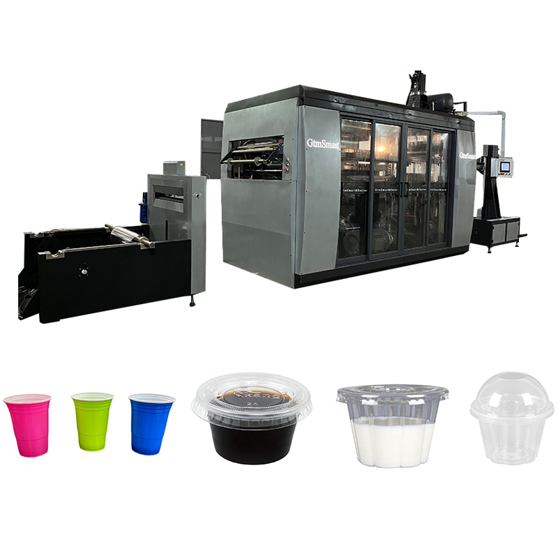 GTMSMART Cup Making Machine is specifically designed to work with thermoplastic sheets of varying materials such as PP, PET, PS, PLA, and others, ensuring that you have the flexibility to meet your specific production needs. With our machine, you can create high-quality plastic containers that are not only aesthetically pleasing but also environmentally friendly.