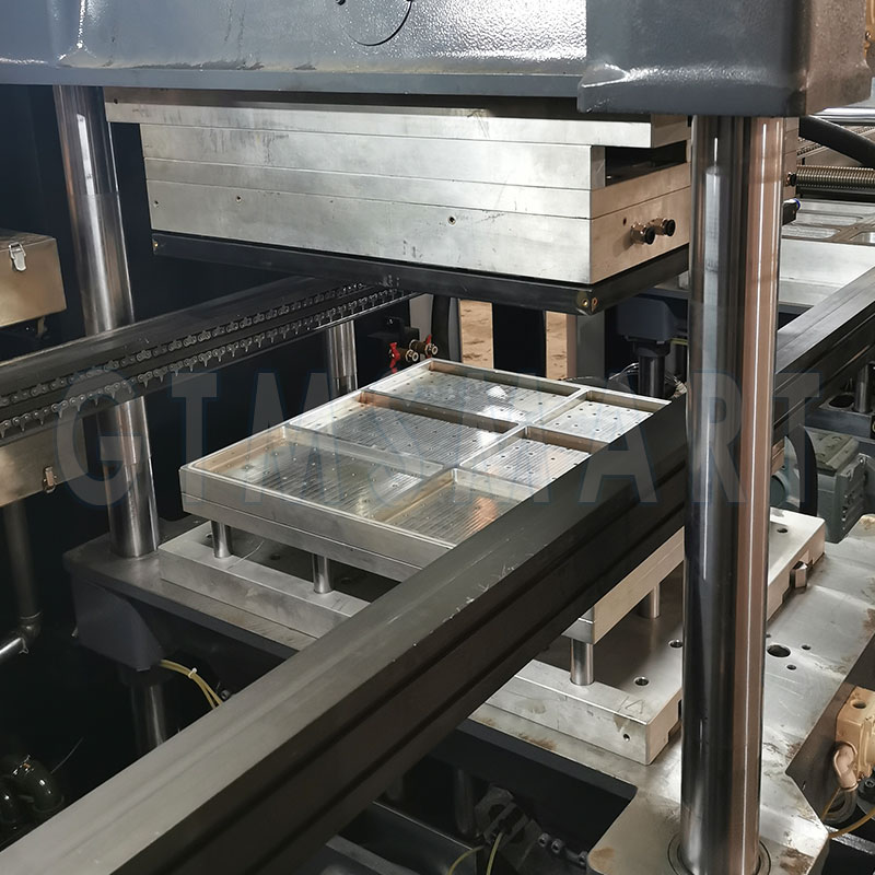 The newly developed GTM series of fully automatic air pressing molding production line includes: feeding unit, pre-heating unit, forming unit, vertical blanking unit, stack unit, scrap winding unit, punching cutting and stacking three-in-one horizontal blanking unit, online labeling unit, etc., which can be combined with flexible production line according to different production requirements of customers.